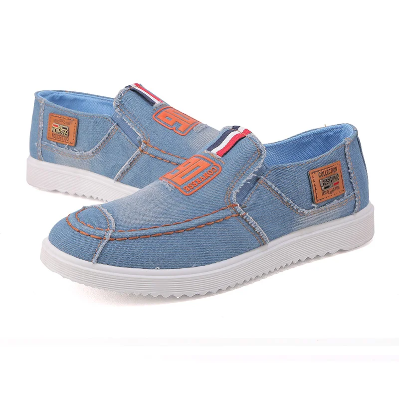 Beste Koop Klassieke Canvas Schoenen Mannen 2018 Lui Schoenen Blauw Canvas Mocassin SANBANG Mannen Retro Slip Op Loafers Gewassen Denim Casual Flats ey5 Goedkoop