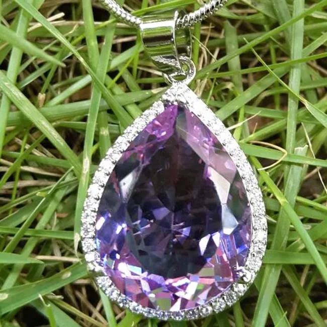 Kopen Goedkoop Deluxe Grote Drop Edelsteen Kleur Veranderende Alexandriet amp; Topaz CZ 925 Zilveren Hanger 34x19mm Online.