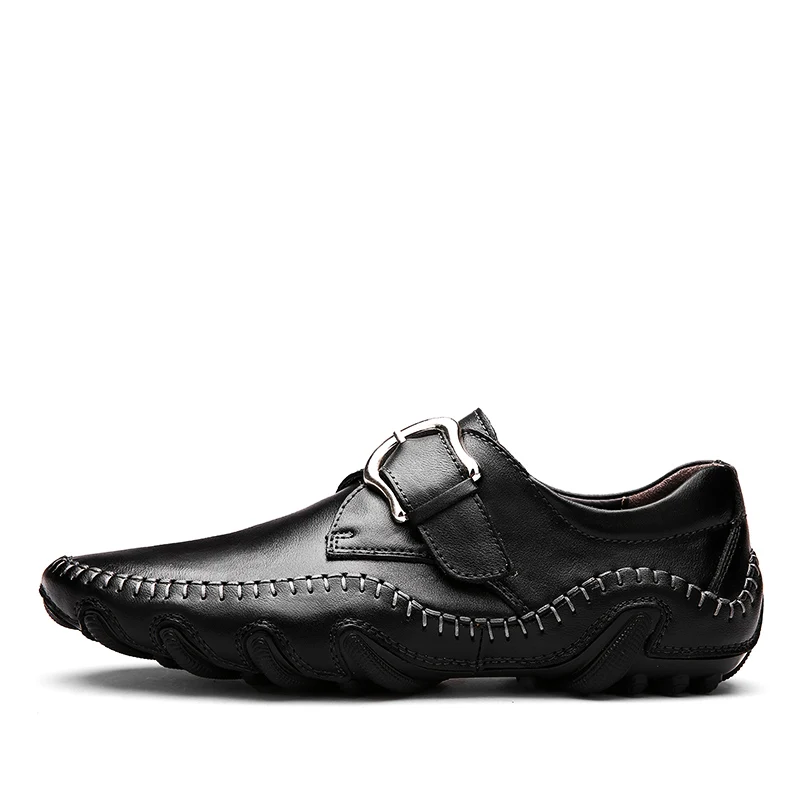Kopen Goedkoop Hoge kwaliteit Handgemaakte Mannen Causale Schoenen Lederen schoenen Mannen flats Slip Op Outdoor Mannen Schoenen Prijs