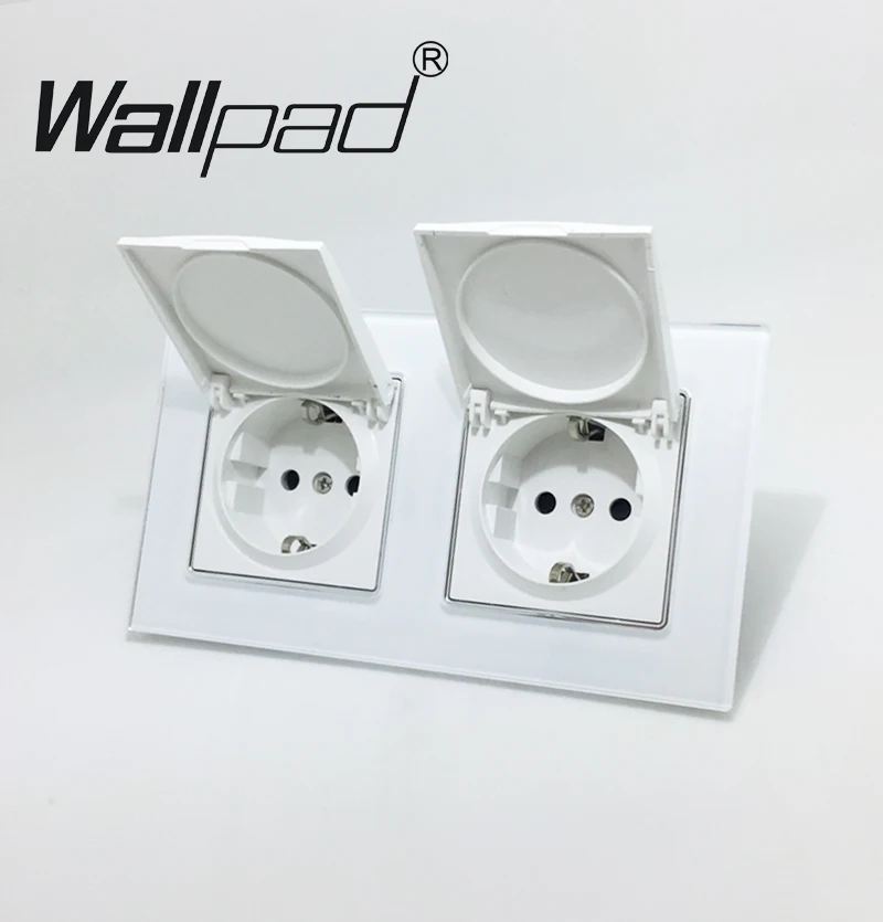 Goede Koop Wallpad Black Crystal Glass Panel 110 V 250 V Dubbele Stofkap EU Europese Schuko Stopcontact met Klauwen Clips Socket met Cap Goedkoop.