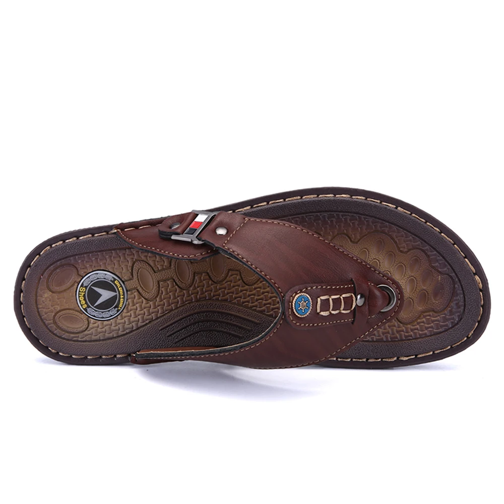 Goede Koop 2018 Merk Zomer Strand Slippers Mannen Pu Lederen Slippers Mannelijke Flats Sandalen outdoor Rubber Thong Strand Schoenen Mannen Lederen nieuwe Goedkoop.