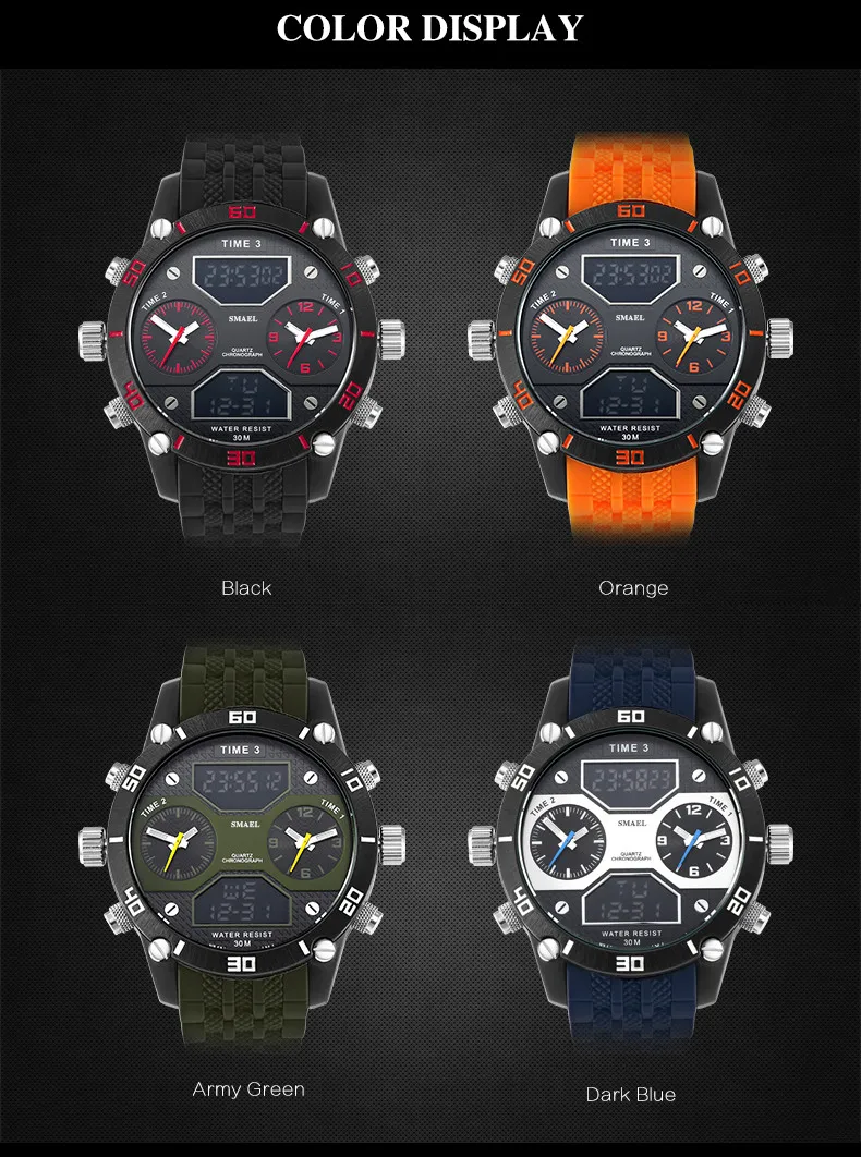 Beste Koop SMAEL Mannen Sport Horloges Waterdicht Militaire Quartz Digitale Horloge Alarm Stopwatch Dual Tijdzones Merk Nieuwe relogios masculino Goedkoop.