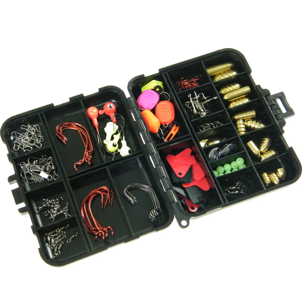 Beste Kopen 128 Stks Visgerei Set Vissen Jigs Haken Lepels Wartels Snap Glow Kralen Gewicht Sinker Vissen Accessoires Box Cover Case Kit Goedkoop
