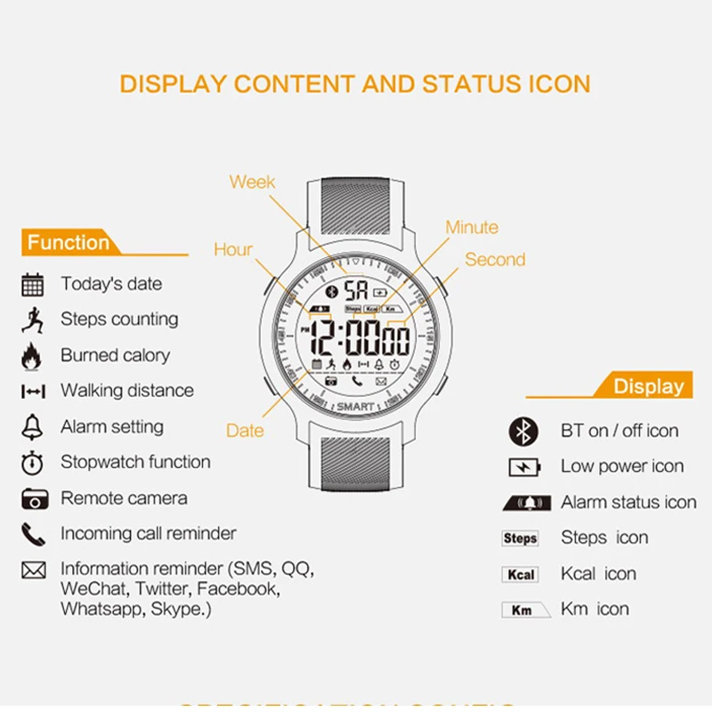 Kopen Goedkoop 11.11 Gratis strap Smart Sport Horloge Makibes EX18C Bluetooth 4.0 Sport Horloge 5 ATM Waterbestendig Afstandsbediening Fitness Horloge Online.