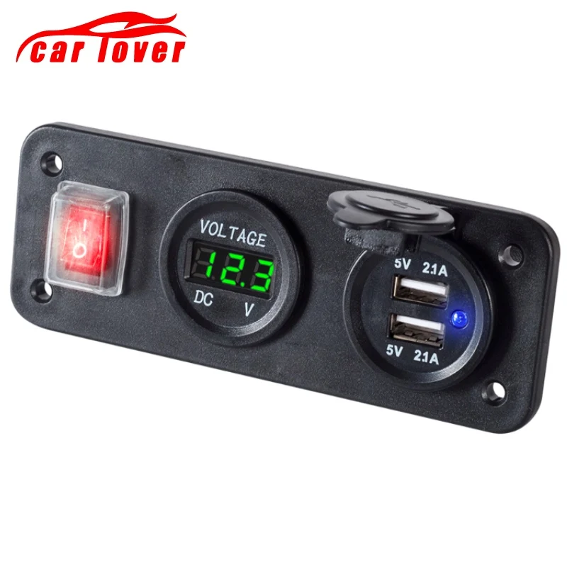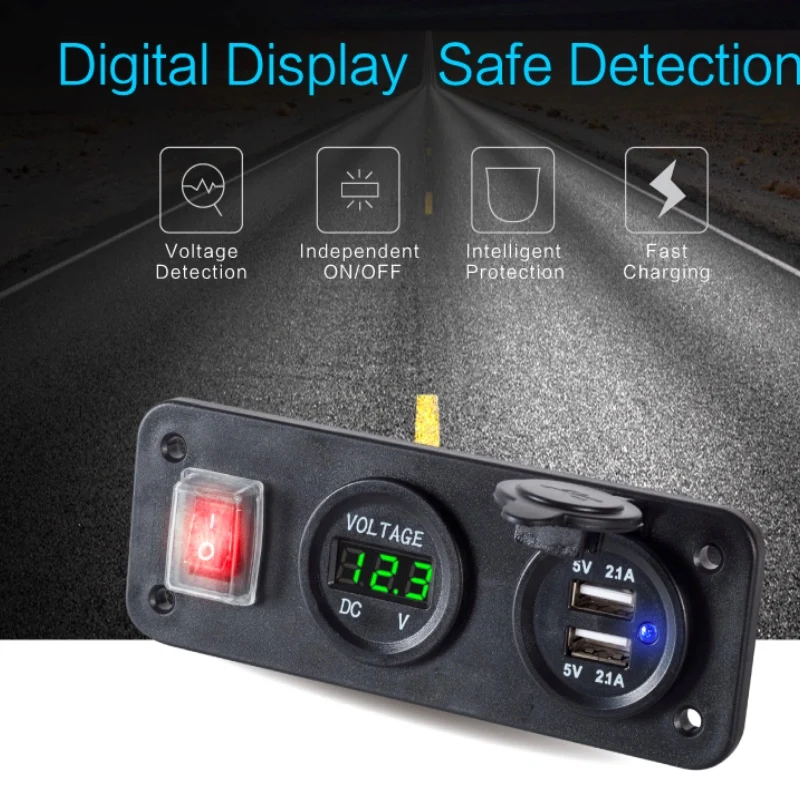 Beste Koop 12 v Sigarettenaansteker Dual USB Adapter Oplader + Digitale Voltmeter met Geen Uit Schakelaar Voor Auto boot Truck USB Charger Goedkoop