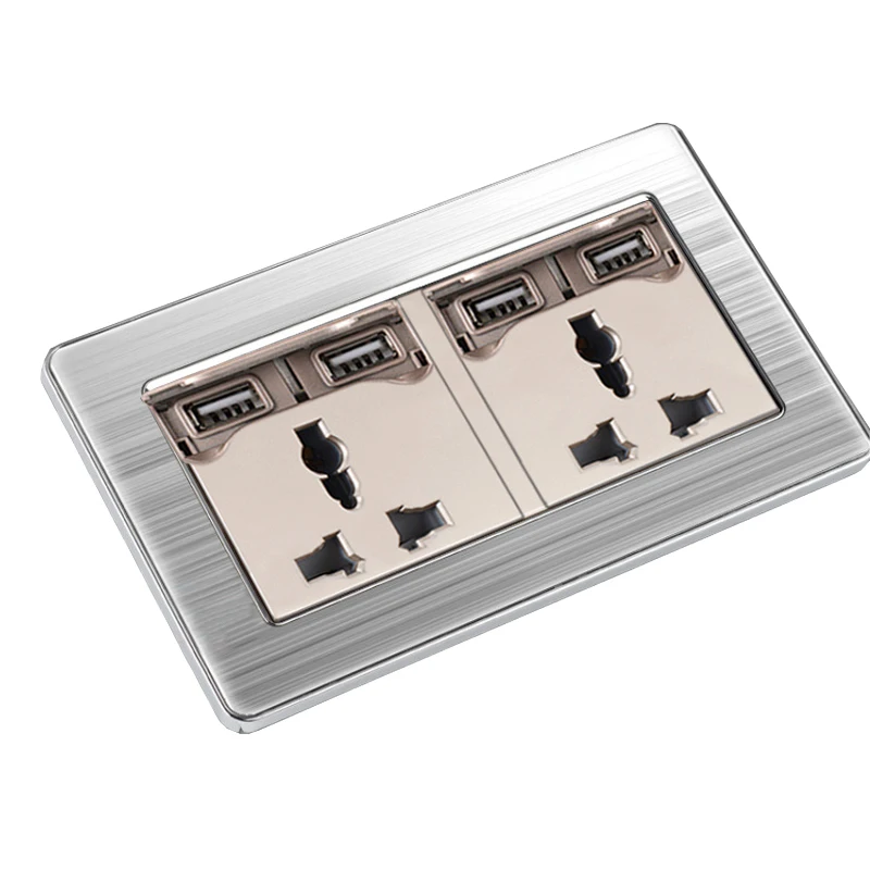 poort. Kopen Goedkoop COSWALL 146 UK Universele Dubbele Socket met 4 USB Lading Poort voor Mobiele Output 5 V 2.1mA Stopcontact Rvs Panel Online.