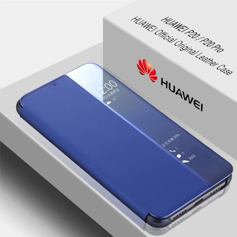 Goede Koop HUAWEI P20 Pro Case Originele Offici euml;le Smart View HUAWEI P20 Case Plating Spiegel Venster Flip Leather Telefoon Case Cover funda coque Goedkoop