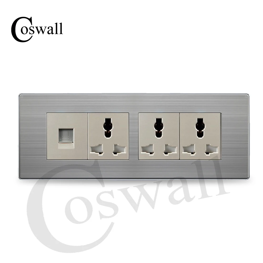 Kopen Goedkoop COSWALL Luxe Universele Stopcontact 3 Manier Muur Outlet Met RJ45 Internet Port Rvs Panel 197*72mm Online