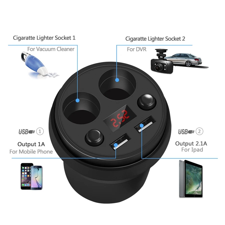 Beste Kopen CHOETECH Universele Cup Autolader 5 V 3.1A Dual USB Auto oplader voor iPhone 7 Plus Voor Samsung S8 met 2 Socket Sigaret lichter Goedkoop.