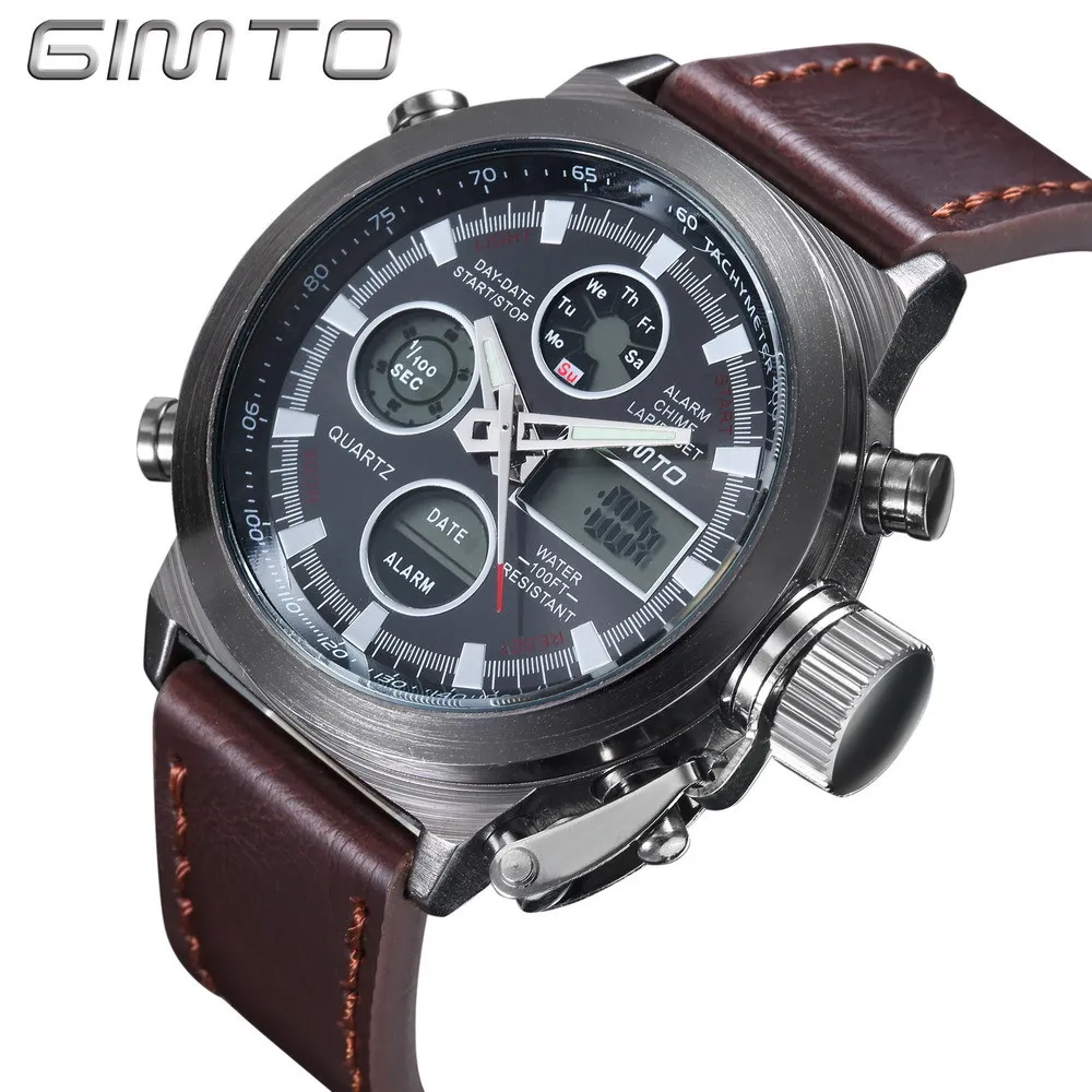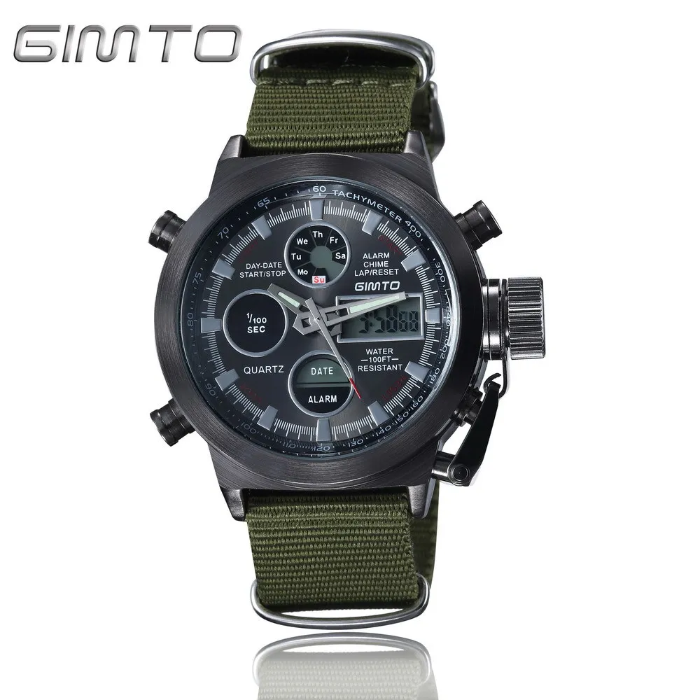 Kopen Goedkoop GIMTO Mannen Sport Horloges Waterdicht Militaire Quartz Digitale Horloge Alarm Stopwatch Dual Tijdzones Gloednieuwe relogios masculinos Prijs.