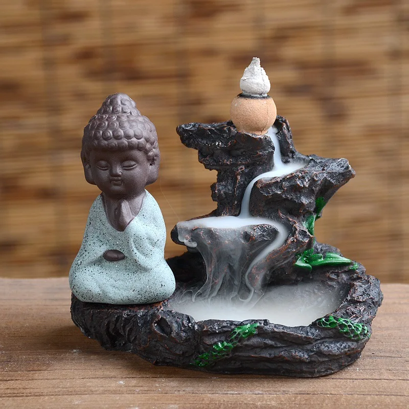 Goede Koop Home Decor Boeddhisme Wierookbrander Rotstuin Boeddha Monnik Bullet Blackflow Wierook Kegels Brander Rook Keramische Wierookvat Brander Goedkoop