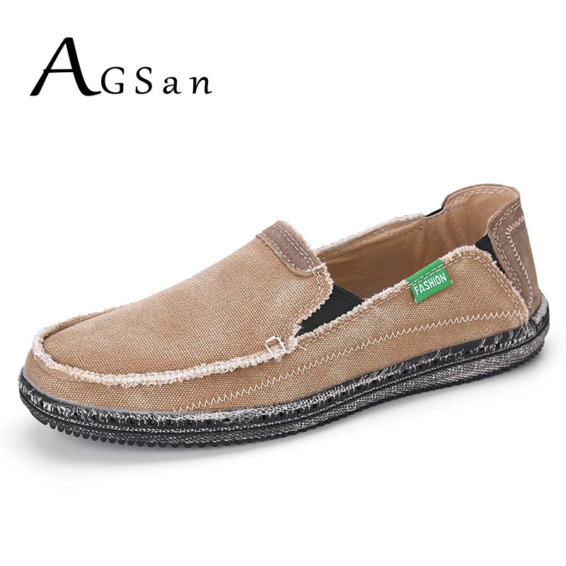 Goede Koop AGSan classic schoenen mannen lui schoenen blauw grijs canvas mocassins mannen slip loafers gewassen denim casual flats big size 46 Goedkoop.