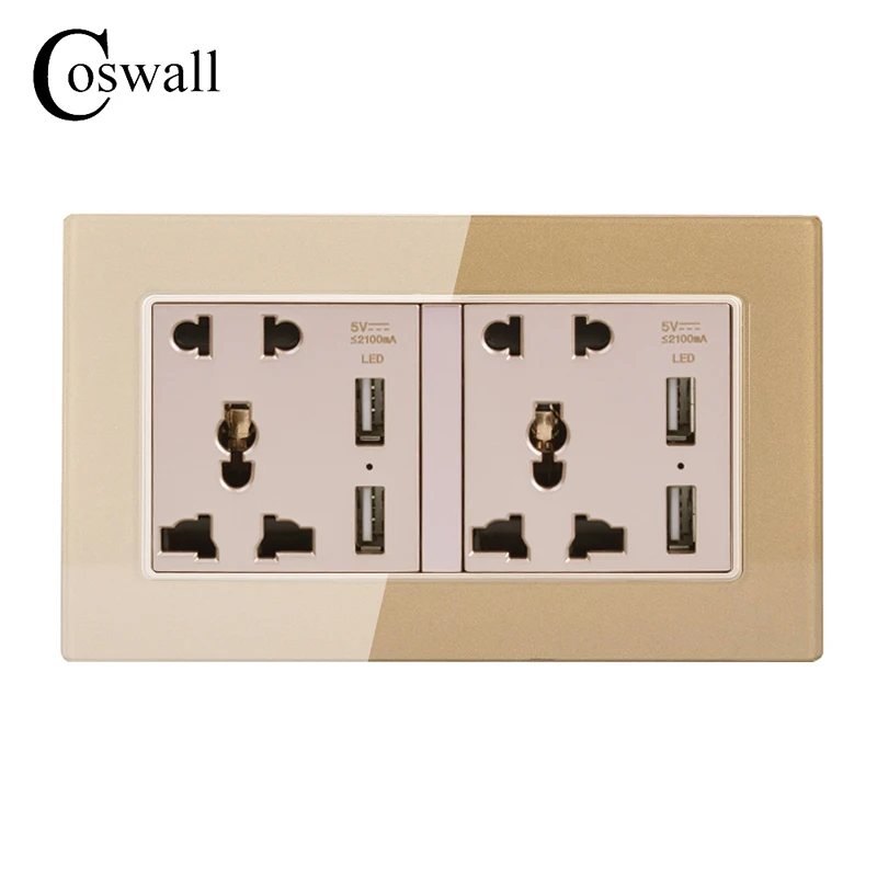 Beste Koop COSWALL Stopcontact Dual Universele 5 Gat Stopcontact Met 4 USB Smart Inductie Oplader Poort voor Mobiele Gehard Glas panel Goedkoop