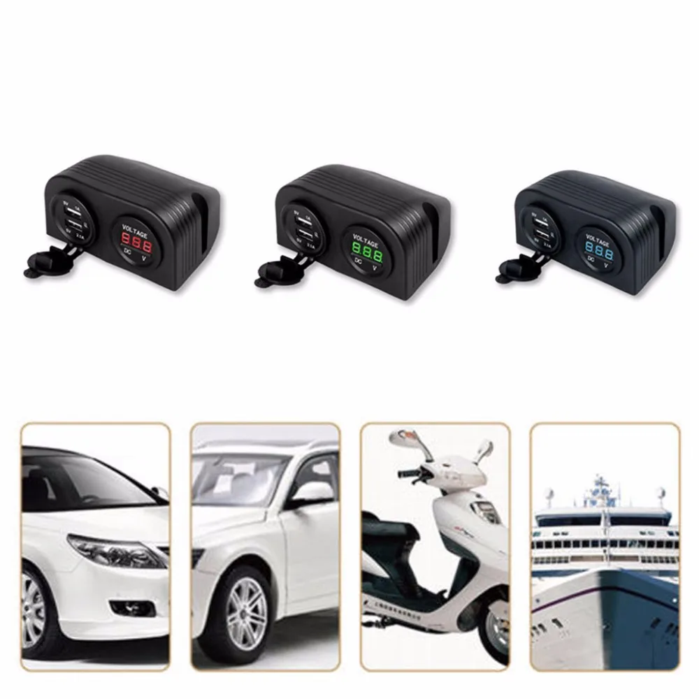 Beste Koop Waterdichte 12 V 24 V LED Digitale Display Voltmeter 2.1A Dual USB Autolader voor Motorfiets Boot Auto Truck Schakelaar Pane Goedkoop.