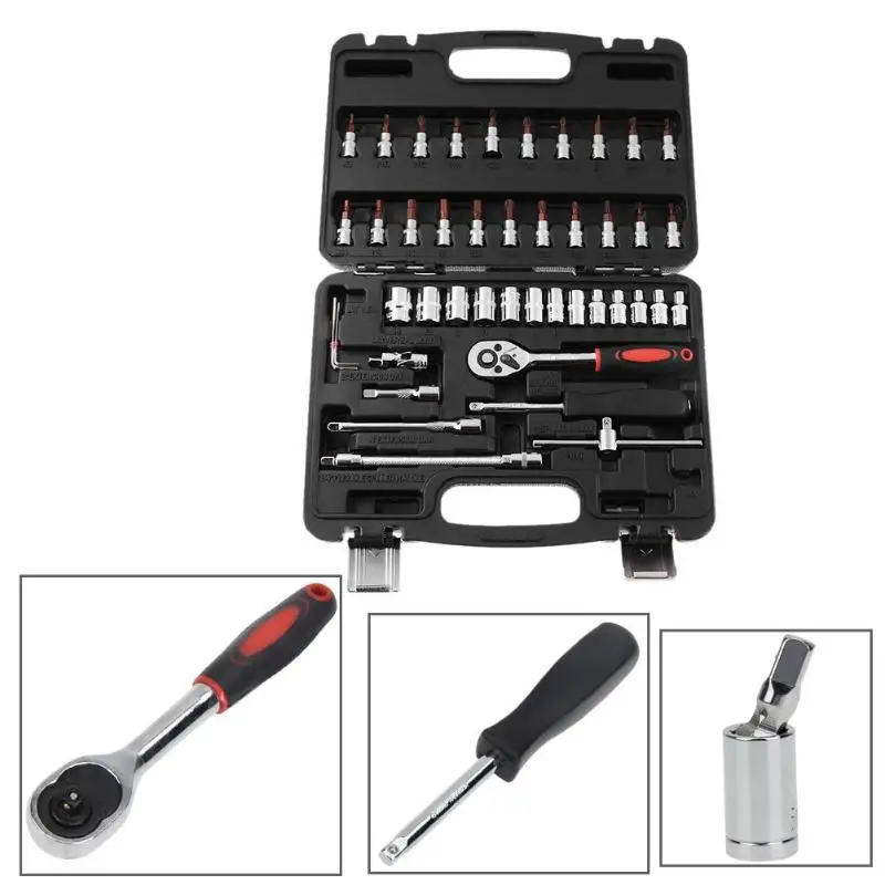Kopen Goedkoop 46 stks Ratelsleutel Set Kit Mouw koolstofstaal Auto Ratelsleutel Set voor Auto Motorfiets Fiets Reparatie Tools Kit Online.