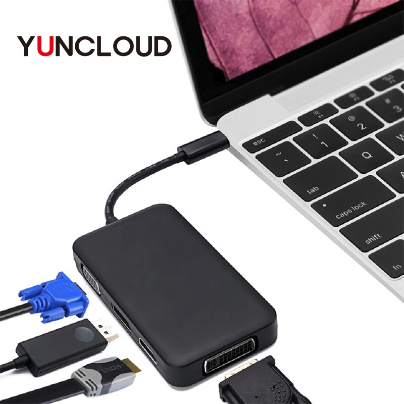 Beste Kopen USB C Hub Male naar DisplayPort DP 4 k HDMI 4 k DVI VGA 1080 p Splitter Hub Adapter voor macBook Samsung Galaxy S9 Type C USB Hub Goedkoop.