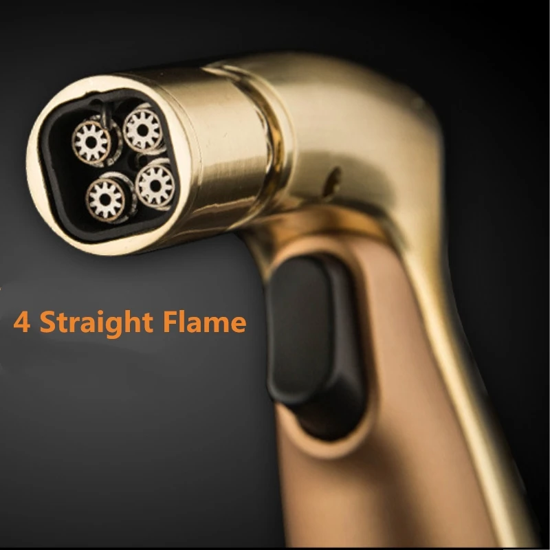 Goede Kopen 4 Winddicht Flame Sigaret Aansteker Quaterniteit Fire Opblaasbare Gasaansteker Sigaar Metalen Jet Lichter Roken Gadgets Voor Mannen Goedkoop.
