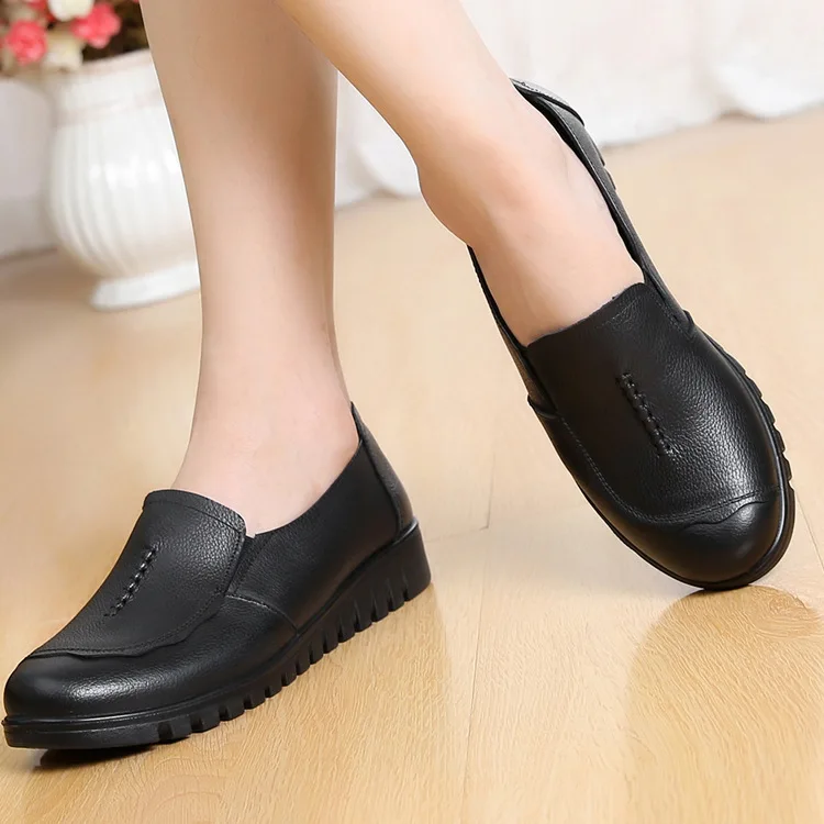 Kopen Goedkoop DONGNANFENG Vrouwen Vrouwelijke Oude Moeder Flats Schoenen Instappers Slip On Ronde Neus Zwarte Koe Lederen Casual Non Slip 35 41 HD 807 Online.