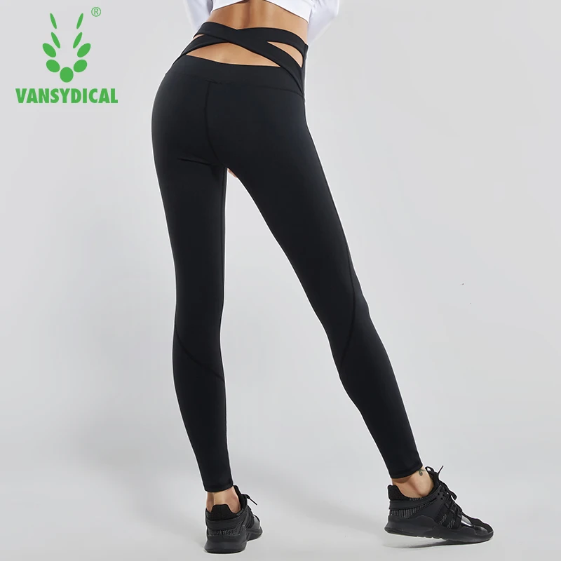Kopen Goedkoop Vansydical Vrouwen Hoge Taille Yoga Broek Cross Riem Dans Panty Compressie Running Leggings Skinny Fitness Sport Broek Prijs