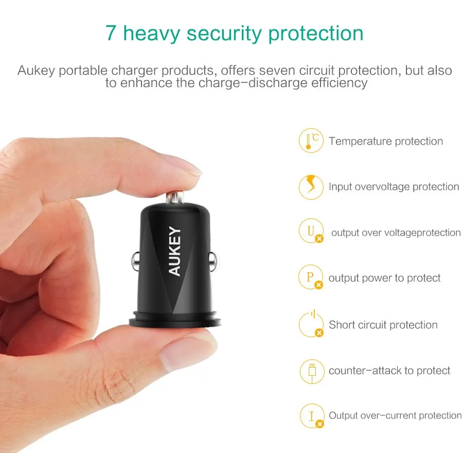 Kopen Goedkoop AUKEY Mini USB Autolader Smart Dual Port Snelle Universele 5 v 4.8A Auto Oplader Voor iPhone X 8 7 LG Samsung Xiaomi amp; Meer Telefoons Prijs