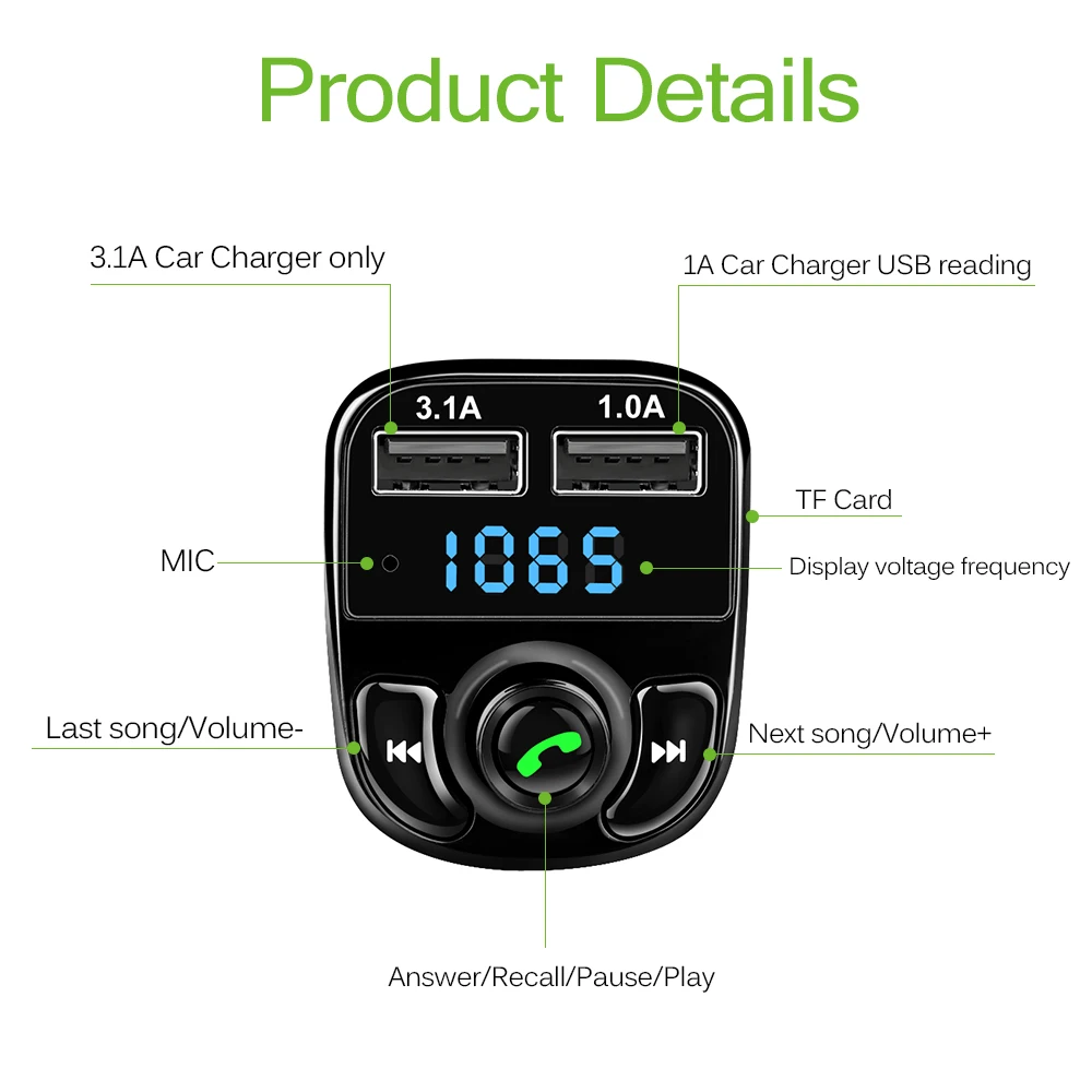 Beste Koop Autolader handsfree met Dual USB 4.1A met Bluetooth Mp3 speler Fm zender Modulator TF Slot Met LED Display Goedkoop