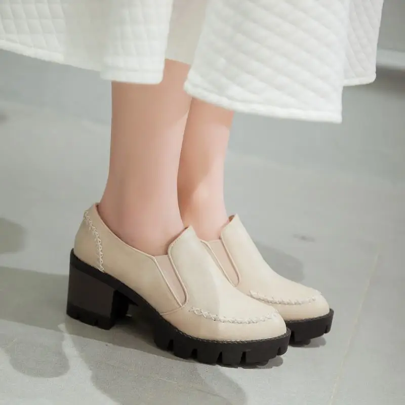 Kopen Goedkoop Asumer plus size 34 43 nieuwe mode slip op vrouwen pompen hoge kwaliteit dikke hoge hakken platform schoenen vrouw Prijs
