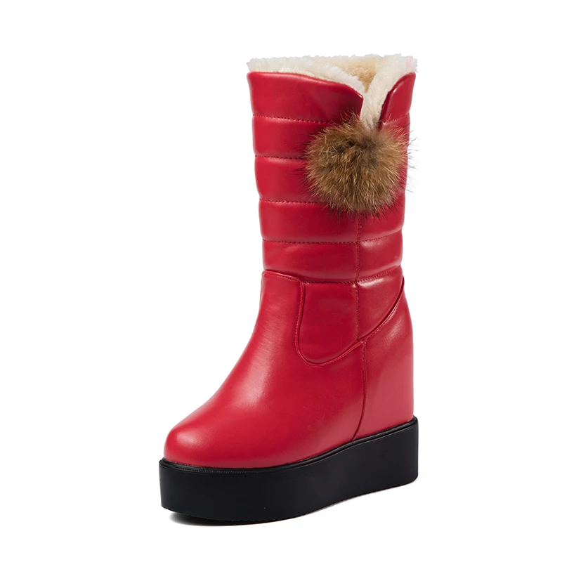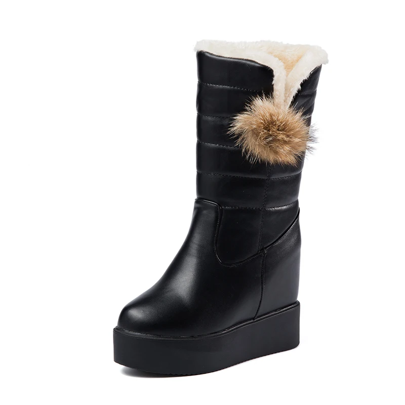 Goede Koop Lucyever 2018 Herfst Winter Vrouwen Snowboots Verborgen Wiggen Platform misstap Mid Calf Laarzen Dikke Warme Pluche Binnenkant Katoen schoenen Goedkoop