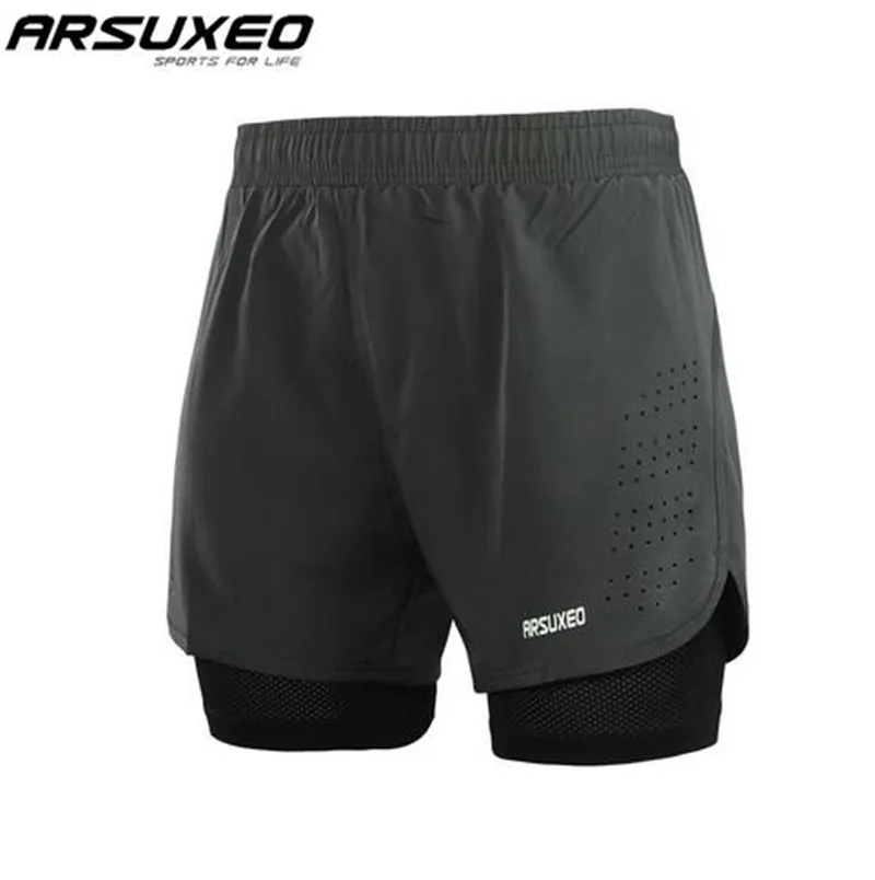 Kopen Goedkoop ARSUXEO Mens Sport 2 in 1 Running Shorts Actieve Training oefening Running Nieuwe mannen Korte Homme Sporting Shorts Mannen Gym korte Prijs