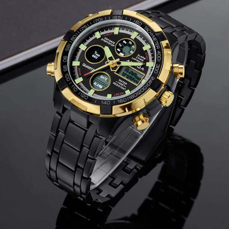 Beste Koop AMUDA Mannen Creatieve Sport Horloges Modemerk Golden Quartz Horloges Waterdichte Digitale Dual Time Horloge Relogio Masculino Goedkoop.