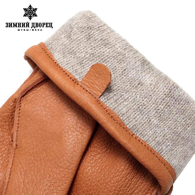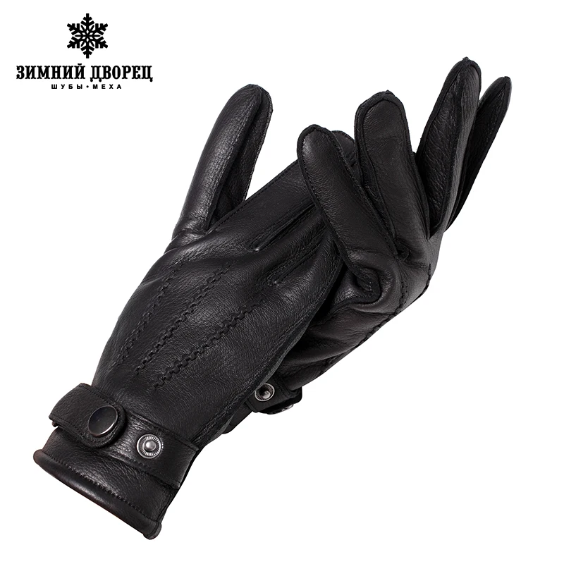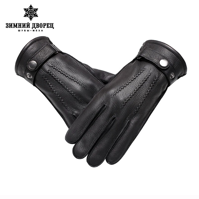 Beste Koop Echt Leer gloveLuxury handschoenen mannelijke Mode lederen handschoenen Populaire handschoenen winter Tough guy handschoenen mannen zwart Snap ontwerp Goedkoop