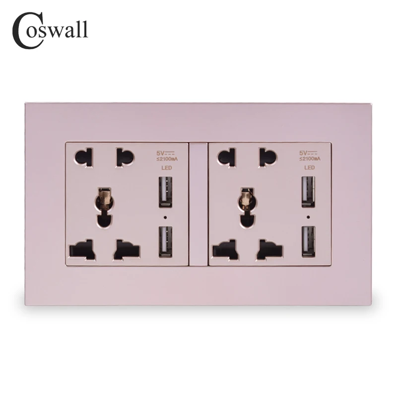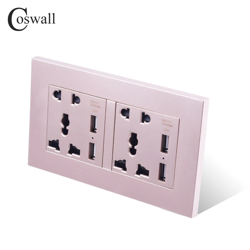 Goede Koop COSWALL Stopcontact Dubbele Universele 5 Gat Stopcontact Met 4 USB Smart Inductie Oplader Poort voor Mobiele Blauwe LED indicator Goedkoop