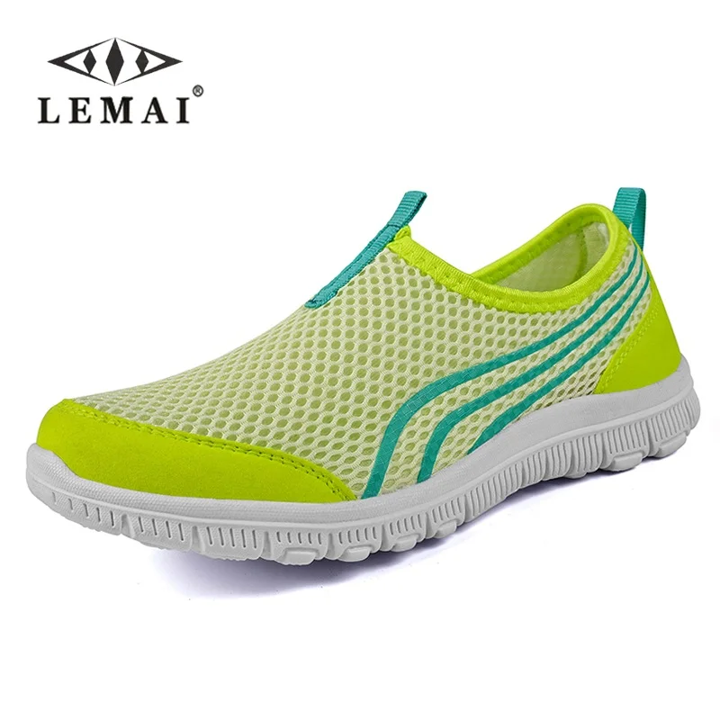 Beste Kopen LEMAI 2018 Mannen Sneakers, Unisex Lover Schoenen Zomer Casual Mannen Schoen Ademend Netwerk Schoenen man Slip Op Flats Voor Man 35 46 Goedkoop