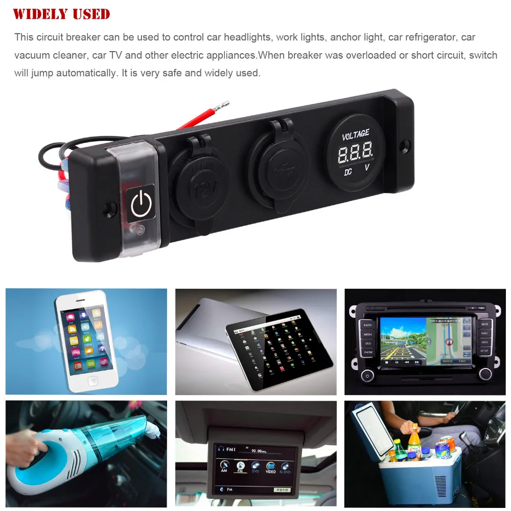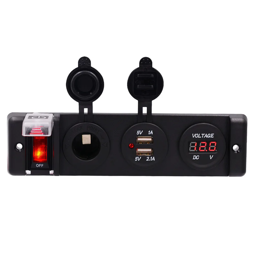 Beste Koop 12 V 16A Dual USB Auto Charger Adapter Vier Bit Power Schakelaar Panel met Voltmeter Sigarettenaansteker Splitter Goedkoop