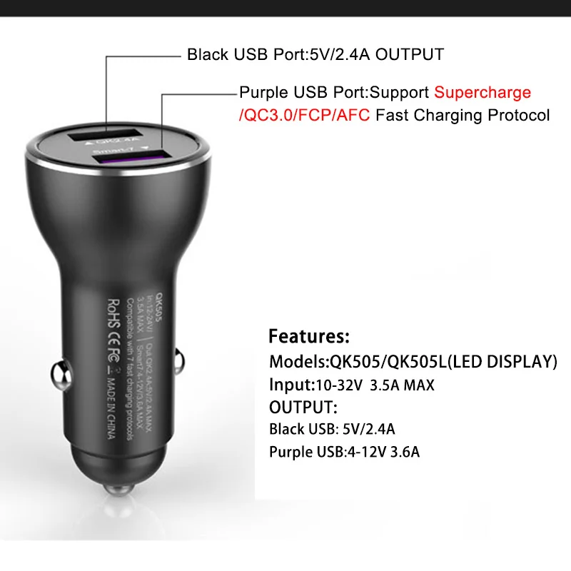 Kopen Goedkoop Supercharge USB Autolader 2 Port Smart FCP Snelle Oplader Voor HUAWEI Mate 8 9 10 Pro P10 Plus P20 honor 8 V8 9 V9 V10 Nova 2 s 3E Prijs