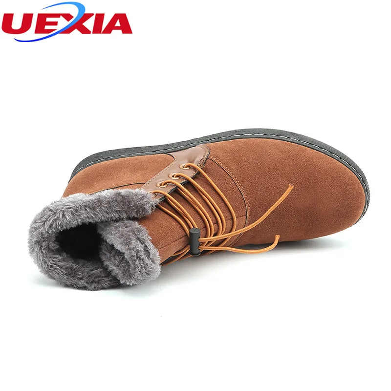Beste Koop UEXIA Mode Handgemaakte Koe Suede Schoenen Winter Slip op Warm mannen Sneeuw Furry Fur Flats Mannen Enkellaarsjes Werk Schoeisel Ronde teen Goedkoop