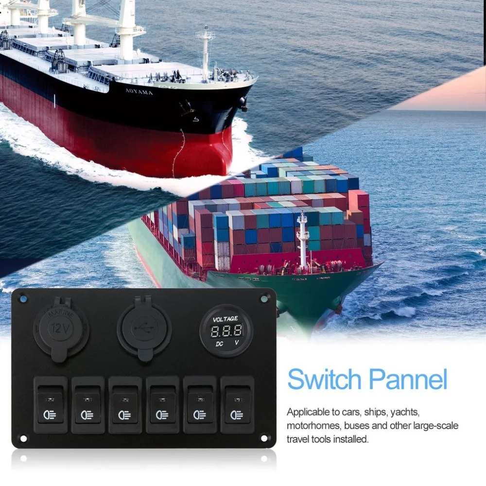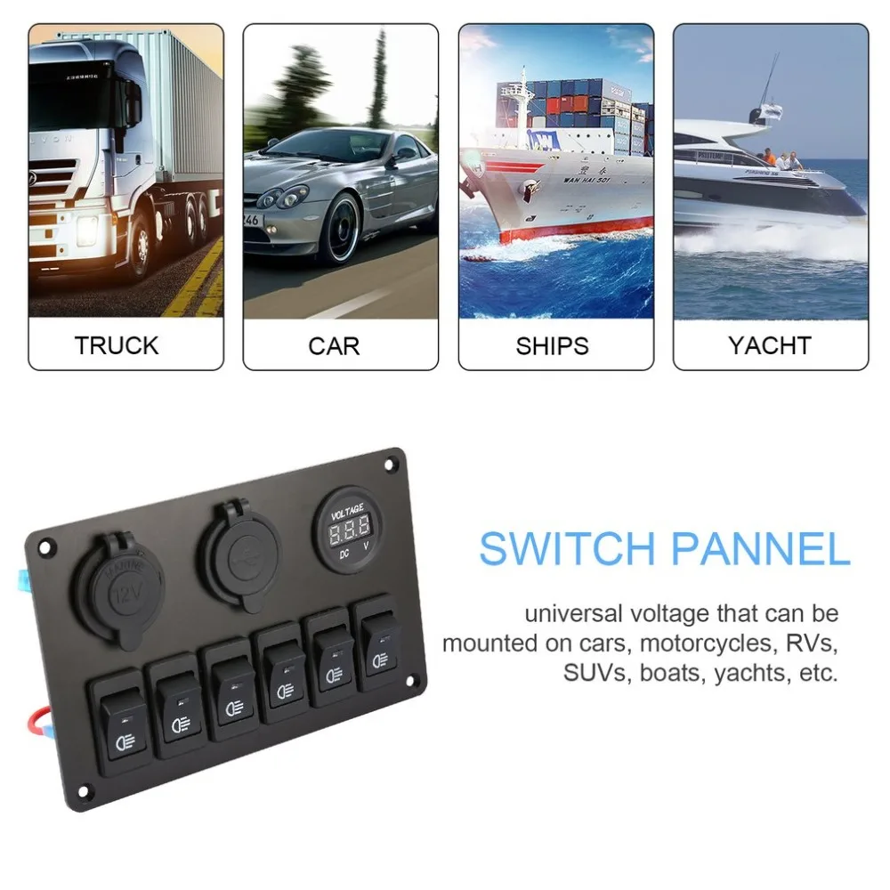 Kopen Goedkoop 6 Gang LED Auto Boot Rocker Switch Panel Dual USB Sigarettenaansteker Voltmeter Auto LED Boot Switch Panel Online