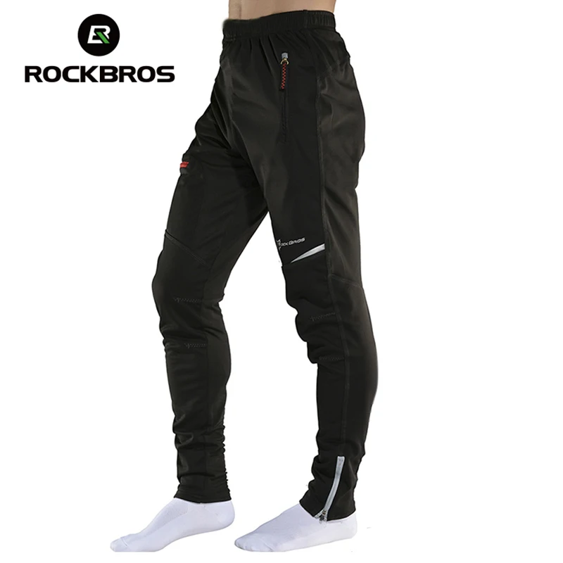 Beste Kopen ROCKBROS MTB Broek Fietsen Mannen Vrouwen Broek Winter Lange Fiets Broek Fleece Sport Running Winddicht Weerspiegelen Outdoor Broek Goedkoop.