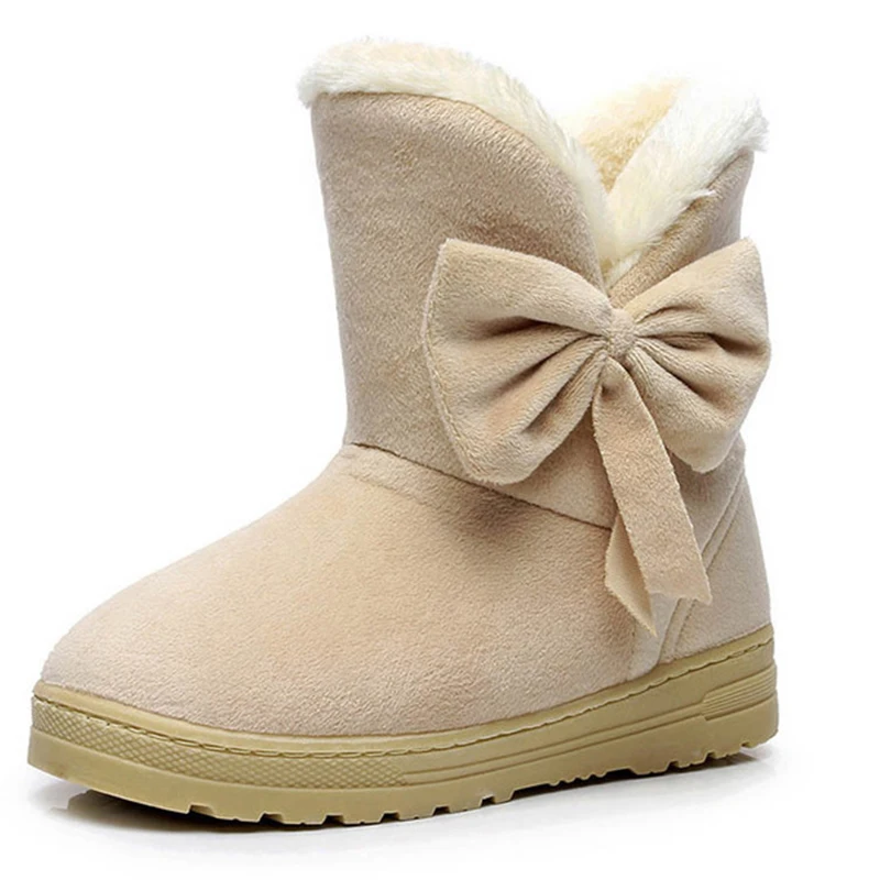 Goede Kopen Vrouwen Snowboots Winter Vrouwelijke Enkellaars Warmer Pluche Bowtie Fur Suede Rubber Platte Slip Op 2018 Mode Platform Vrouwen schoenen Goedkoop.