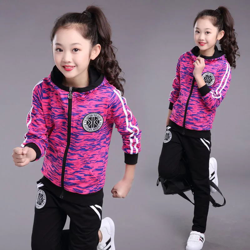 Goede Koop Meisjes Sport Past Meisjes Set Herfst Toevallige Streep Hooded Jas + Broek 2 st Meisje Trainingspak 2018 Kid Print Pak kinderen Kleding Set Goedkoop.