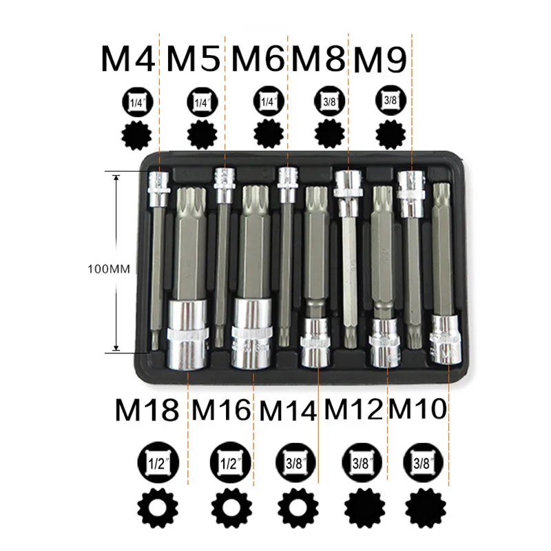 Kopen Goedkoop 10 stks 4 Inch Extra Lange XZN Triple Vierkante Spline Dopsleutel, S2 Staal Bits, chrome Vanadium Sockets Prijs.