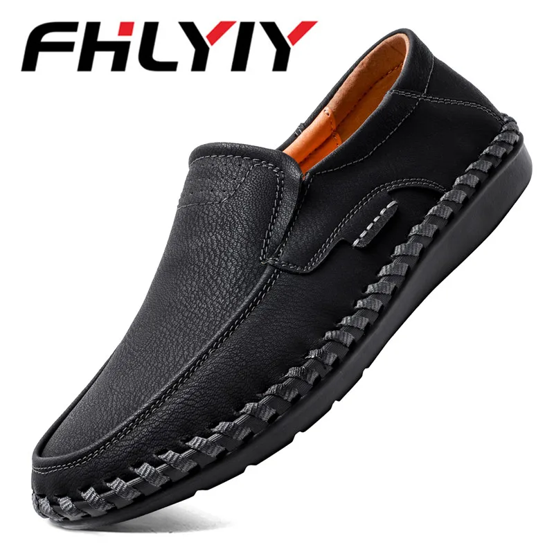 Kopen Goedkoop Hoge Kwaliteit Mannen Echt Lederen Casual Schoenen Ronde Neus Handgemaakte Slip Op Lederen Schoenen Daily Flats Mannelijke Schoeisel zapato Prijs.