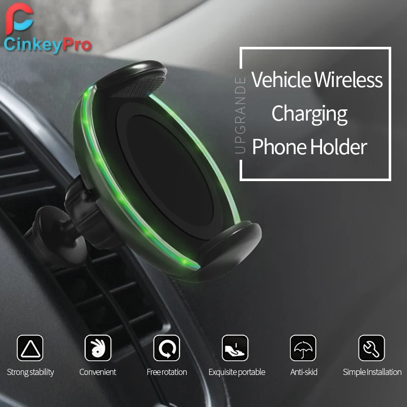 Beste Kopen CinkeyPro QI Draadloze Autolader voor iPhone 8 10 X Samsung Galaxy S6 S7 S8 LED Light Air Vent Mount stand 5 v 1A Opladen Goedkoop