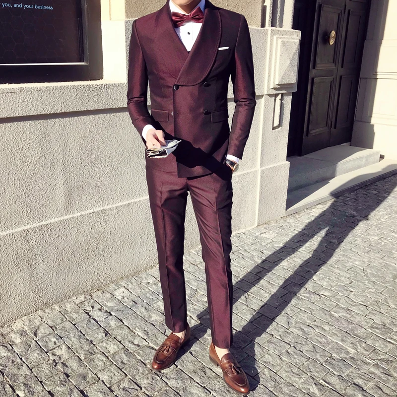 Kopen Goedkoop Broek jas nieuwste ontwerp Pak Dubbele Borst Wedding Prom Terno Slim Fit Vestito Uomo Grote Kraag Steekzakken Jurk Roken pak Prijs