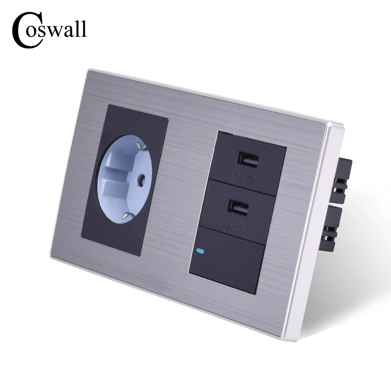 Goede Koop COSWALL Dubbele Paneel EU Standaard Stopcontact + Dual USB Charge Port Voor Mobiele 5 v 2.1A Uitgang + 1 gang 1 Manier Schakelaar Met LED Goedkoop.