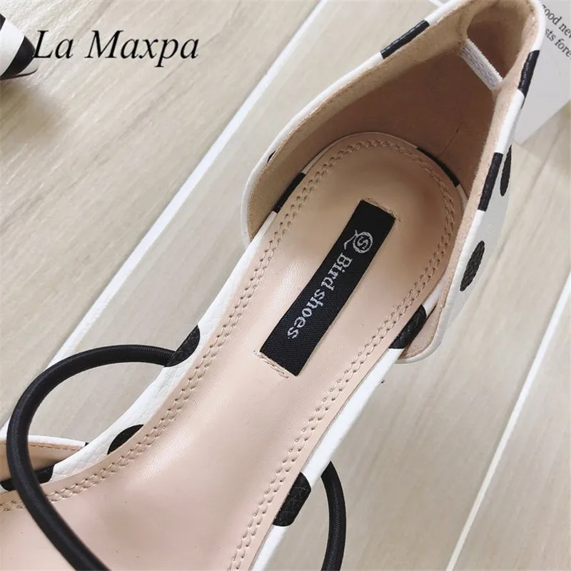 Kopen Goedkoop La MaxPa Zomer Polka Dot Vrouwen Sandalen Puntschoen Vrouwen Streep 6 cm Dunne Hak Dames Slippers Comfortabele Slip Op schoenen Pompen Online