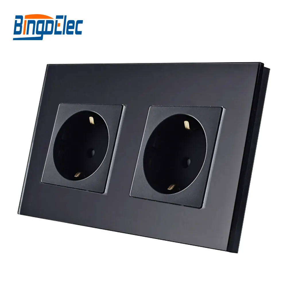 Kopen Goedkoop EU standaard dubbele gang stopcontact, duitsland type stopcontact, white Crystal gehard glas panel, 16A stopcontact, Online