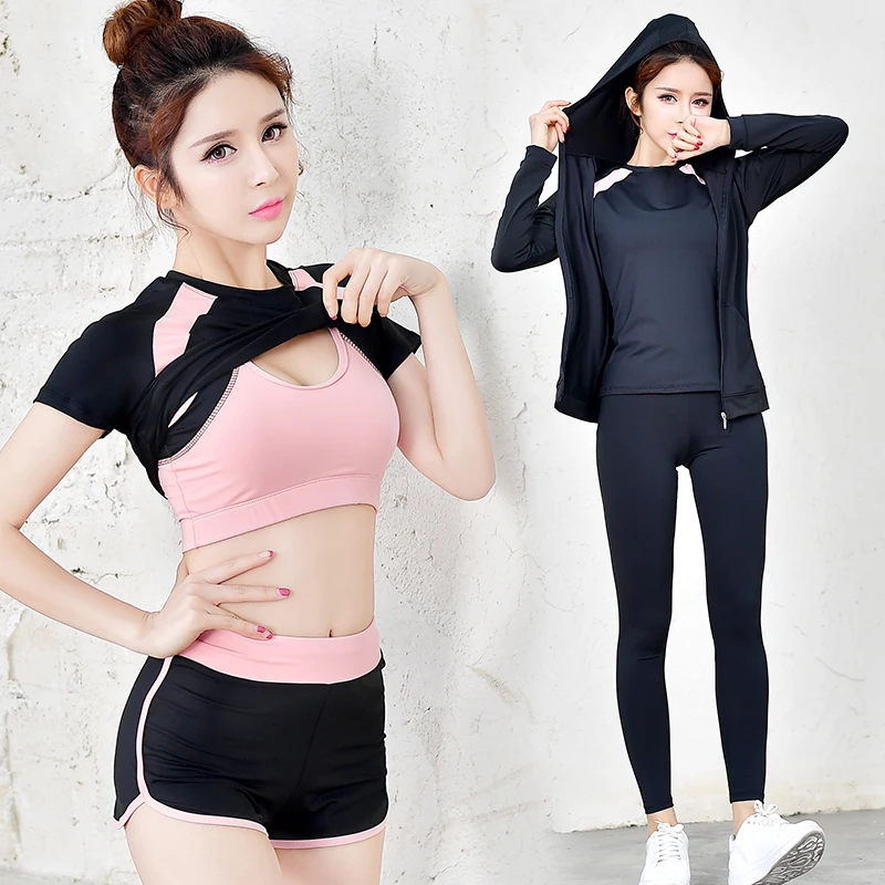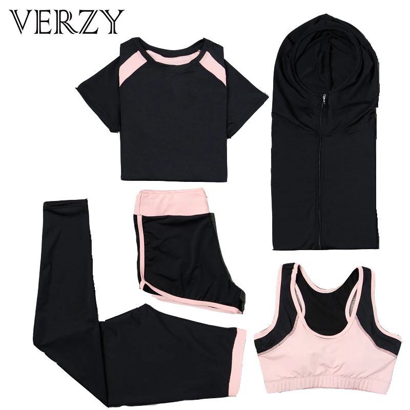 Kopen Goedkoop 2018 Yoga Set Sport Jacket + Panty Broek + Korte + Yoga Shirt + Sport Bras 5 stuks Running Sportkleding trainingspak Fitness Gym Kleding Prijs.