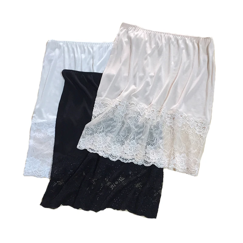 Kopen Goedkoop Natuurlijke zijde Half Slips 100% ECHTE ZIJDE vrouwen Kant glijdt effen naakt wit zwart basic stijl onderjurk Anti geleegd nieuwe ondergoed Online.