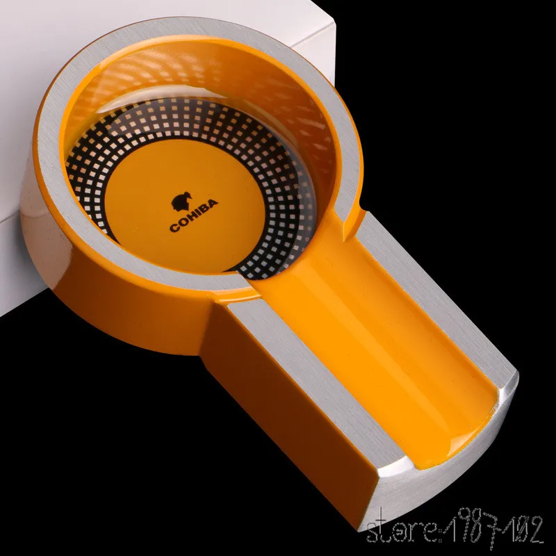 Kopen Goedkoop Aankomst COHIBA Asbak Mini Roken Asbak Metalen Pocket Sigaret Sigaar Ash tray Reizen CP Sigaar Asbak Geel Goud Zwart Online.