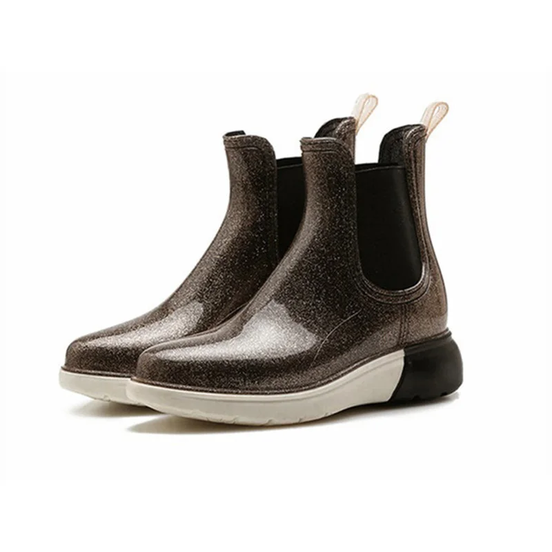 Goede Koop Lzzf 2018 Herfst Schoenen Vrouwen Mode Platte Regen Laarzen Vrouwen Rubber Slip op Side Outdoor Zwarte Vrouw Dames Regenlaarzen Bottes tenis Goedkoop